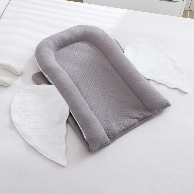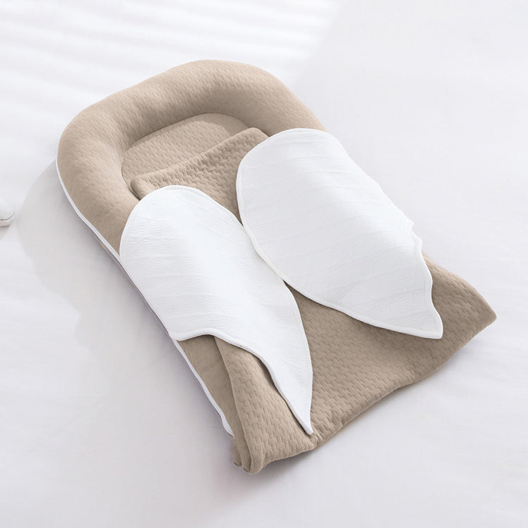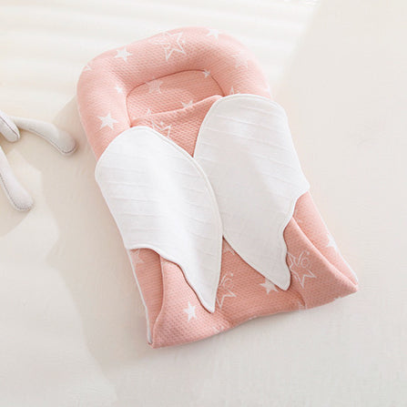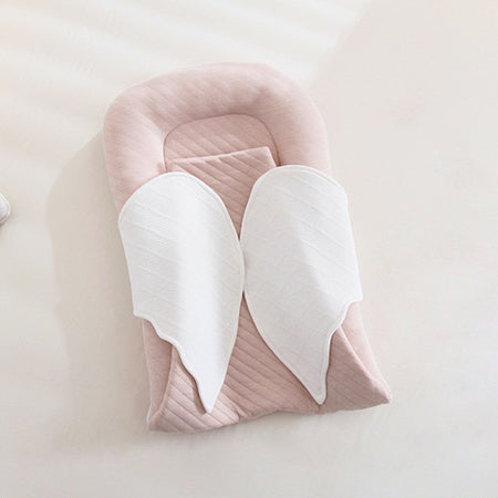 This adorable baby nest comes with its own built-in swaddle blanket—perfect for cooler days when extra warmth matters. The lounger pad measures 26" × 17" and the blanket is a roomy 20" × 20", giving your little one plenty of snuggle space. With its sweet wing-shaped design, it’s a must-have for both parents and babies.