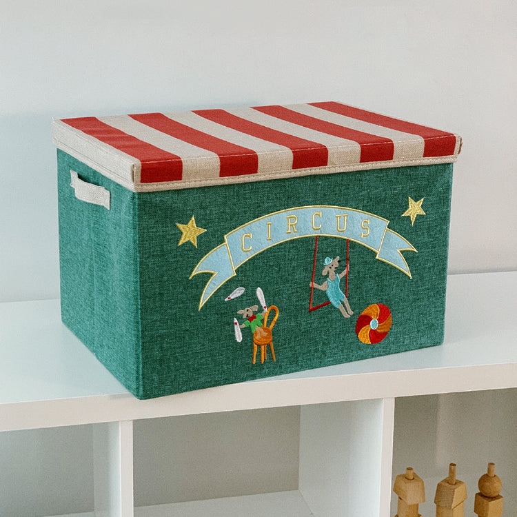 Measuring 19” x 13” x 12”, this storage box offers ample space to store anything from tiny toy parts to large plushies. Its kid-friendly design ensures it stays at a child-accessible height, helping foster a habit of tidying up while keeping your home effortlessly organized.