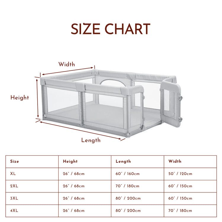 Specially designed net fabric with no leverage points ensures your baby remains safe and within sight. Enjoy peace of mind with a full view of your baby from any angle. With a height of 26" (68cm), our playpen ensures a secure environment for activities like play, learning to stand, and crawling.