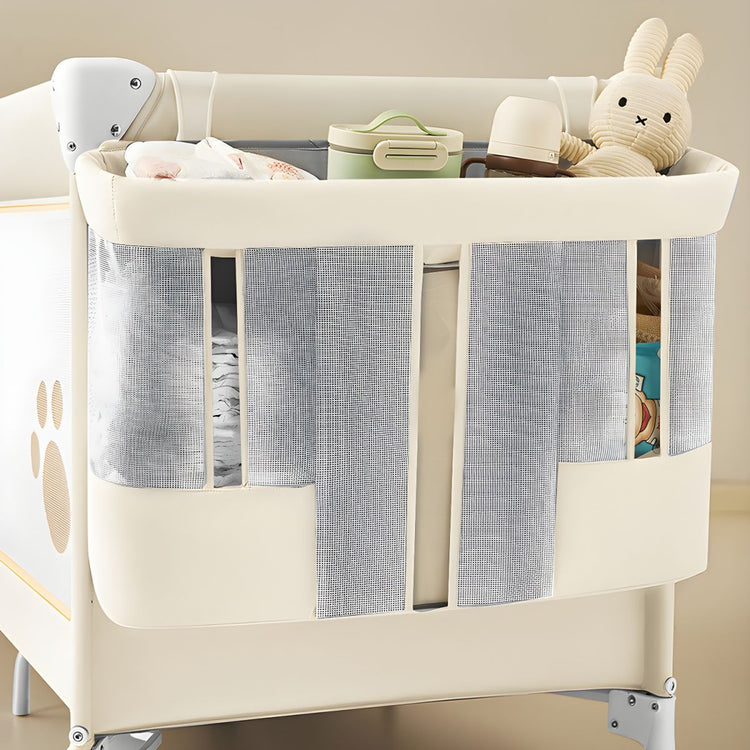 The travel bed features a thoughtful zippered arch at its base, creating dual functionality. In playpen mode, the arch allows crawling babies to enter and exit independently, fostering exploration and fun. In crib mode, the arch doubles as a storage access point, letting parents retrieve items from the bottom storage compartment effortlessly.