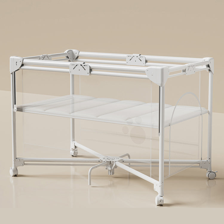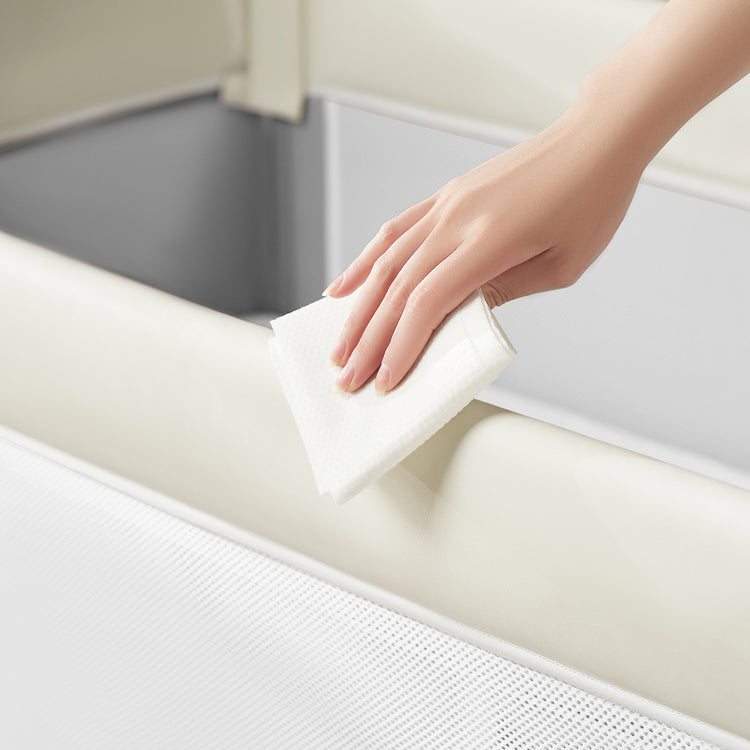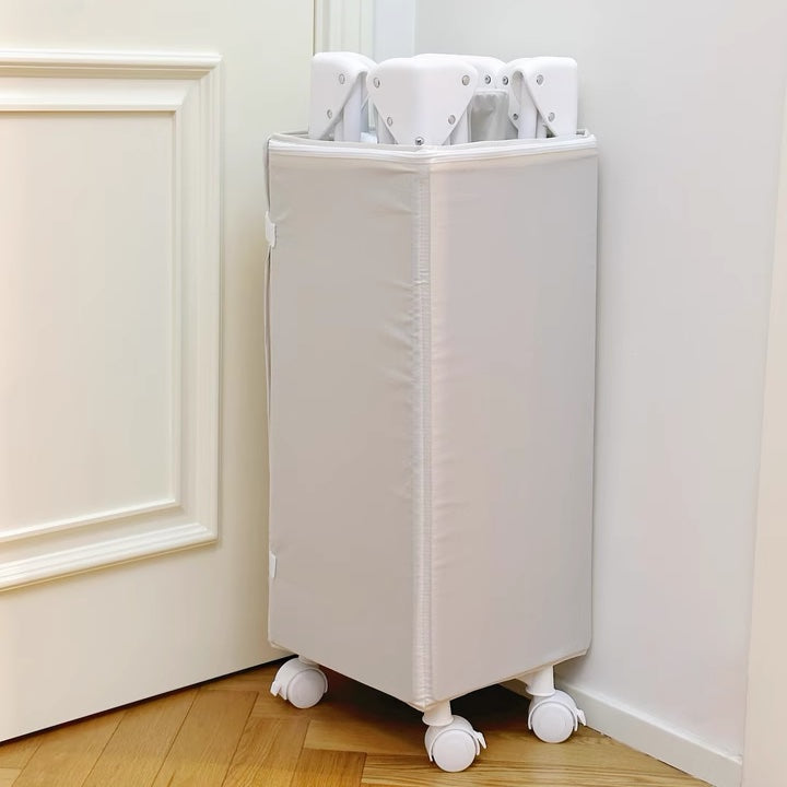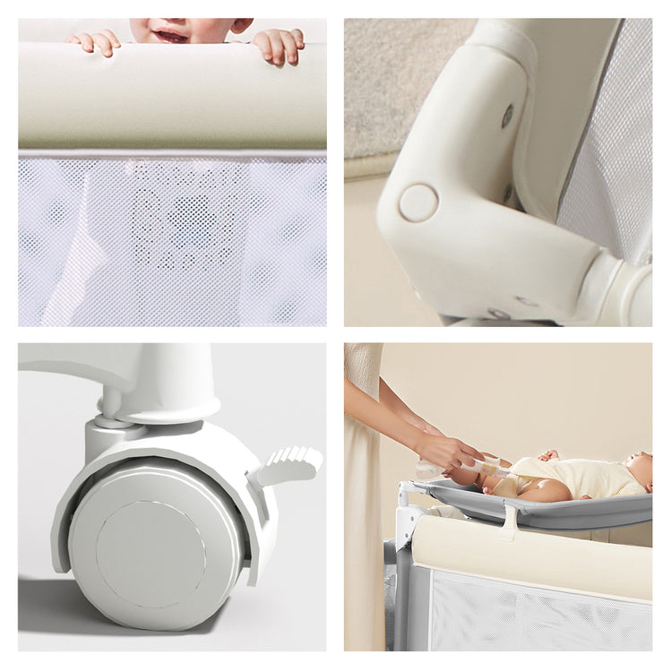 Equipped with lockable, silent wheels, this travel bed can be moved around the house without disturbing others. Whether you’re transitioning it between rooms or securing it as a co-sleeper, the wheels ensure smooth and quiet operation while keeping the bed firmly in place when locked.