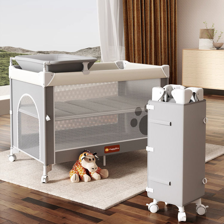 • Features a detachable side storage basket, perfect for organizing diapers, wipes, and baby essentials.