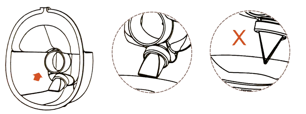 Press the flange firmly onto your breasts with no gaps, and make sure your nipple is placed right in the center. Keep it upright at all time. It may not work properly otherwise.
