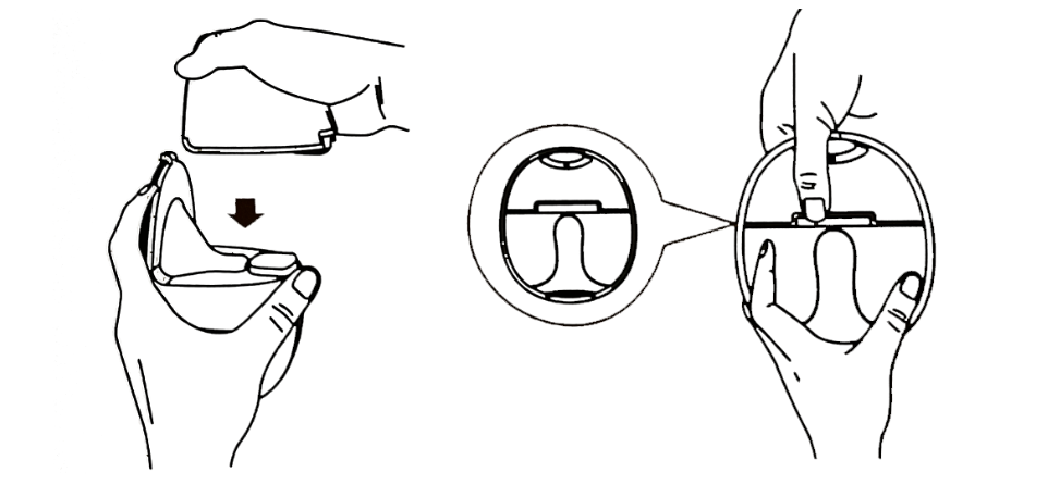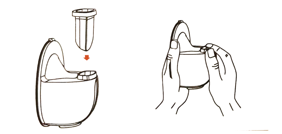 Drop the pump body onto the milk collector, aligning the notch with the silicone thingy. Push it down to seal the deal.