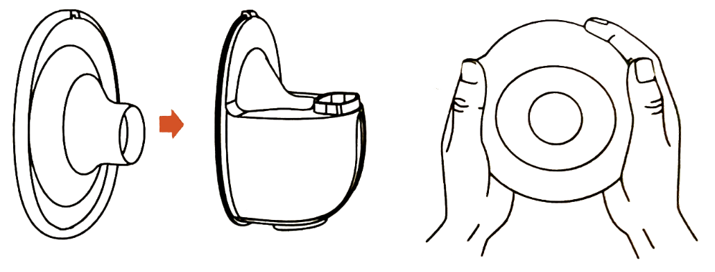 Snap the flange onto the milk catcher, matching the grooves and pressing firmly for a seal.