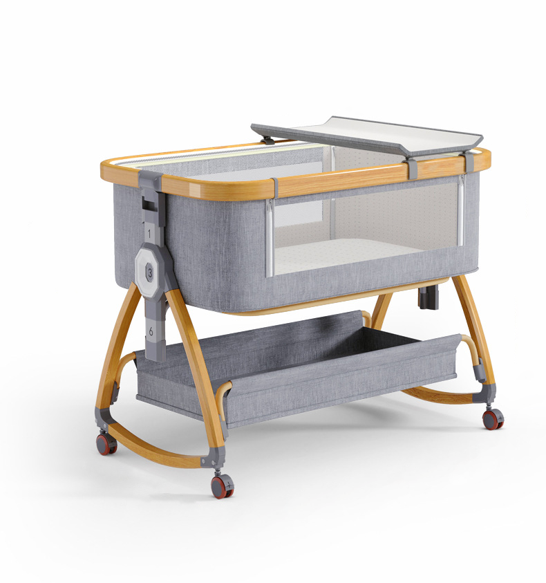 The bassinet's gentle rocking feature, with a scientifically designed 5° to 15° angle, soothes your baby into a peaceful sleep. The silent, multi-directional wheels make it easy to move around, ensuring your baby remains undisturbed.