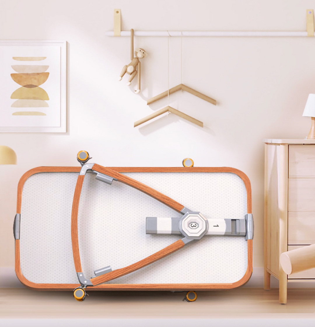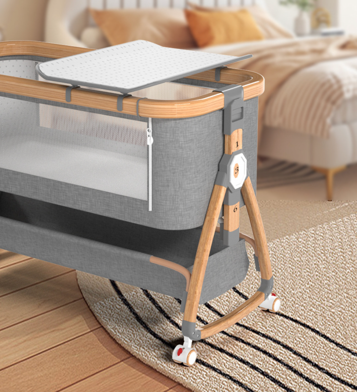 Embrace the ease of our paint-free, no-installation design. Whether you have a large bed or a small one, our bassinet seamlessly attaches, creating a secure and cozy extension of your bed. Choose from our variety of styles and materials, including elegant wood grain aluminum, chic white-tube aluminum, or the soft, fabric-edged option.