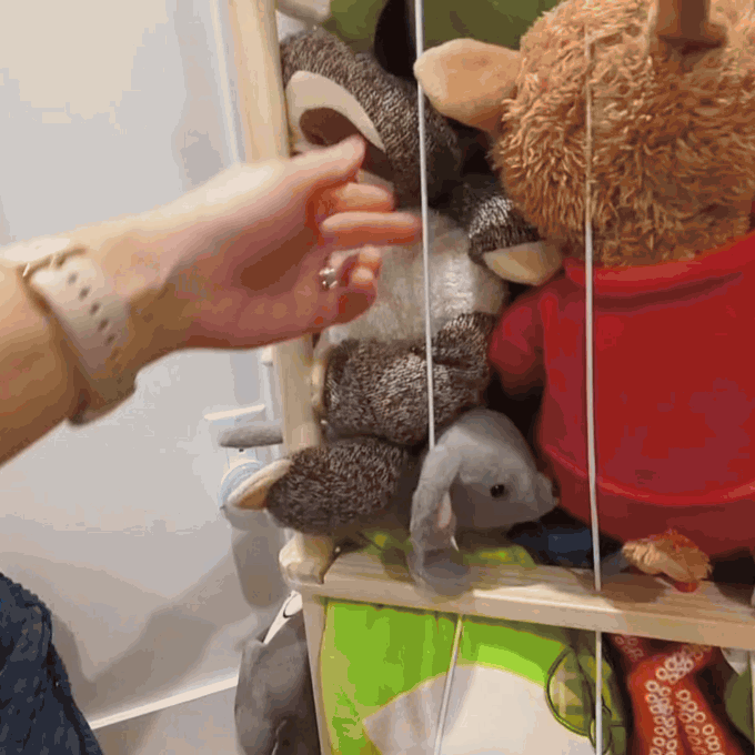 Traditional bins force you to fish from the top—good luck reaching bottom dwellers! Our rack’s stretchy side ropes create little windows everywhere, so any toy slides out effortlessly. The cords also gently hold toys in place until you pull them free.