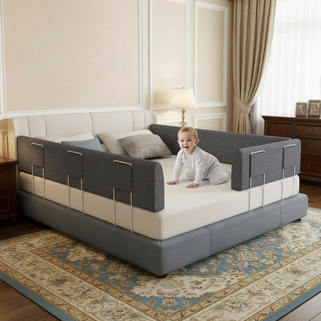 Want a fortress around the bed perimeter? Each rail section snaps flush into the next for zero gaps. Cover one side or all four—your choice for an instant playpen feel.