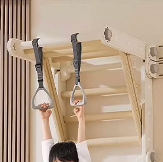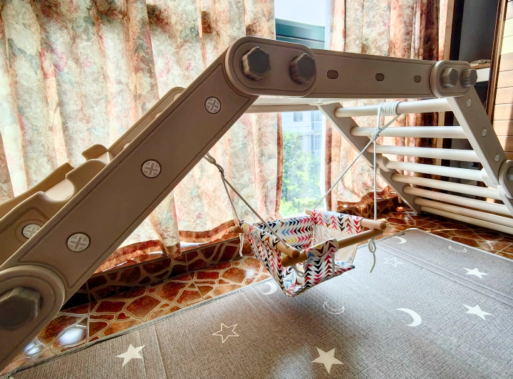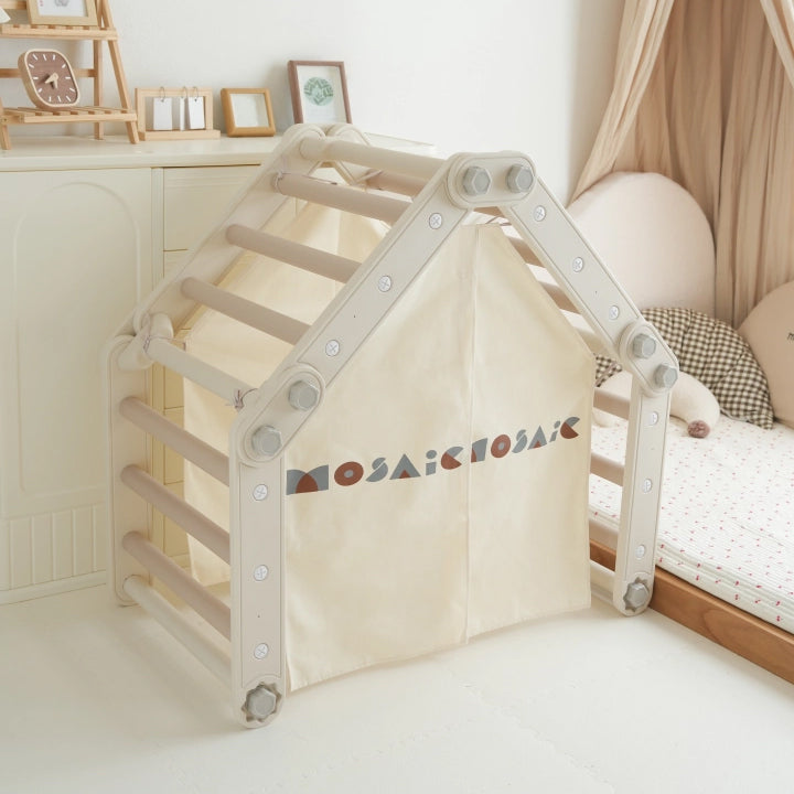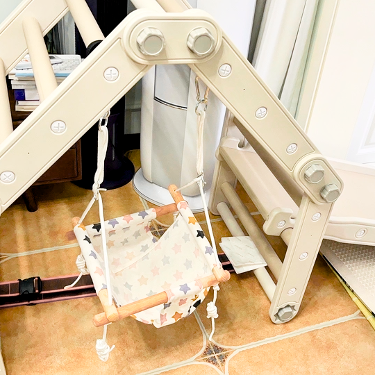 What’s more fun than climbing? Swinging! Our climber is compatible with a swing attachment, making it an exciting activity that strengthens core muscles while encouraging parent-child bonding. Want a cozy hideout? With included accessories like curtains and rings, it transforms into a little house for hide-and-seek or reading time—a private space for your child’s adventures.