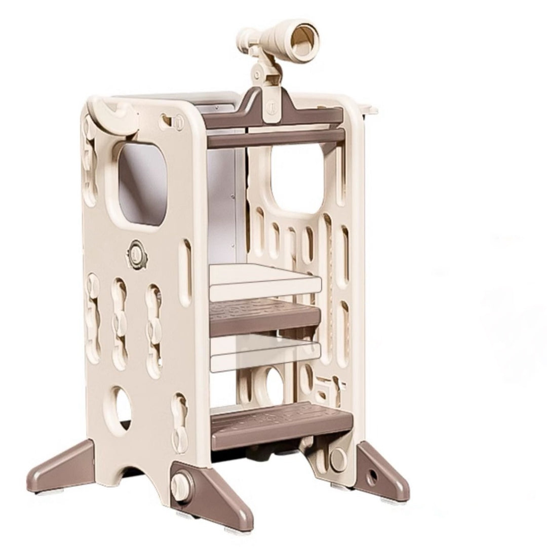 Not only are the stairs adjustable, but the drawing board’s height can also be tailored to suit your child’s growth. The telescope adds to the fun, tilting effortlessly in all directions—left, right, up, and down. The HappyGira Toddler Tower isn’t just a piece of home decor; it’s designed for endless fun, with every detail thoughtfully made adjustable to spark curiosity and creativity.