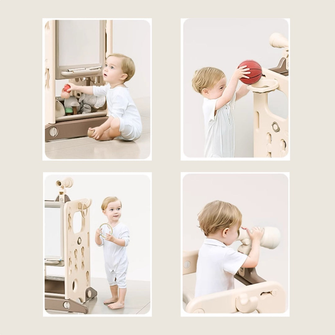 Your child’s curiosity comes alive through the lens of the telescope. This one-of-a-kind feature lets them explore every detail of their surroundings, turning ordinary moments into extraordinary adventures. Paired with a basketball hoop, storage shelves, and pull-up rings, this HappyGira Toddler Tower transforms into an all-in-one activity center, making childhood both fun and unforgettable.